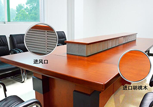 申瑞康設計的會議室桌面空氣凈化器,外觀造型漂亮,可容納多人同時煙霧吸收,桌內機身的風扇能源源不斷將煙霧廢氣空氣抽入,然后通過另一出口的導流片均勻地把被凈化過的空氣散開,這也就是對于桌面空氣凈化器來說最重要的一點。
