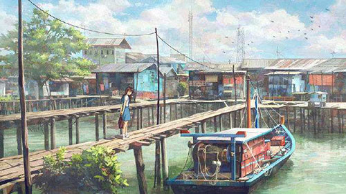 | 遠(yuǎn)方的天一絲絲微亮了起來。是魚肚的浮白,一層層淡淡地從啟明星邊的灰藍(lán)中褪了出來,淡金色的微光散在云邊。小趙拉開酒紅色的簾子,昂著頭,就那么靜靜地站著。絲簾垂在兩邊,框住了這嶄新的、朦朧的一切。 小趙的舊靴子在接連幾天的暴雨轟擊下終于開了膠。她拖著四下離散的鞋底往教室踱去,凌晨5點(diǎn)半,她熱愛這孤獨(dú)的時(shí)刻,這讓她覺得自己與別人不一樣。每個(gè)人都不甘平凡的吧,她想。雨水混著污水汩汩地在下水道悶聲流著,摻著河里凈化水質(zhì)用的噴泉傾灑的聲音,竟也顯得不那么陰暗了。只是下水道早已被不知名的塑料袋或是一些其他異物堵住了,豁口不夠呼吸,于是那些污水和其余發(fā)臭的垃圾一起,回旋上升,然后匯成一團(tuán)黃白色的液體緩緩浮上來。像是免疫時(shí)傾瀉出的膿液,昭示著克服感染的成果,或是被同化的結(jié)果。汩汩地流著,一層一層慢慢涌上來,似乎要把小趙吞沒。那些異物,不斷的,發(fā)黃的,淌著血液的,骯臟的,又是誰(shuí)的?